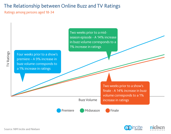 While results from a recent NM Incite (a Nielsen/McKinsey company) study confirms the correlation between social activity and TV ratings, the opportunity for social television start-ups is in identifying and explaining the variations in popularity between Nielsen’s most highly rated shows and those series being discussed online and how to benefit from it.